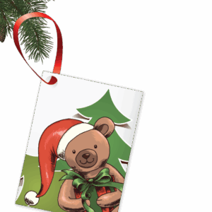 Easy: If you don’t want to cut anything out, an even simpler approach is to glue the front and back of the card together. Then poke a hole at the top or top corner of the card, loop a piece of festive ribbon through the hole and enjoy your new ornament.